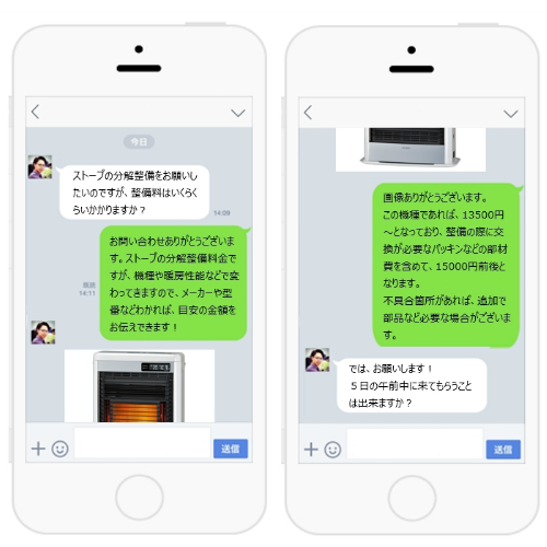 修理の依頼なども、電話やメールではなかなか伝えにくい内容でも、トークと画像などを使うことで、お互いが伝えたいことを、正確に素早く対応も可能になると思います。